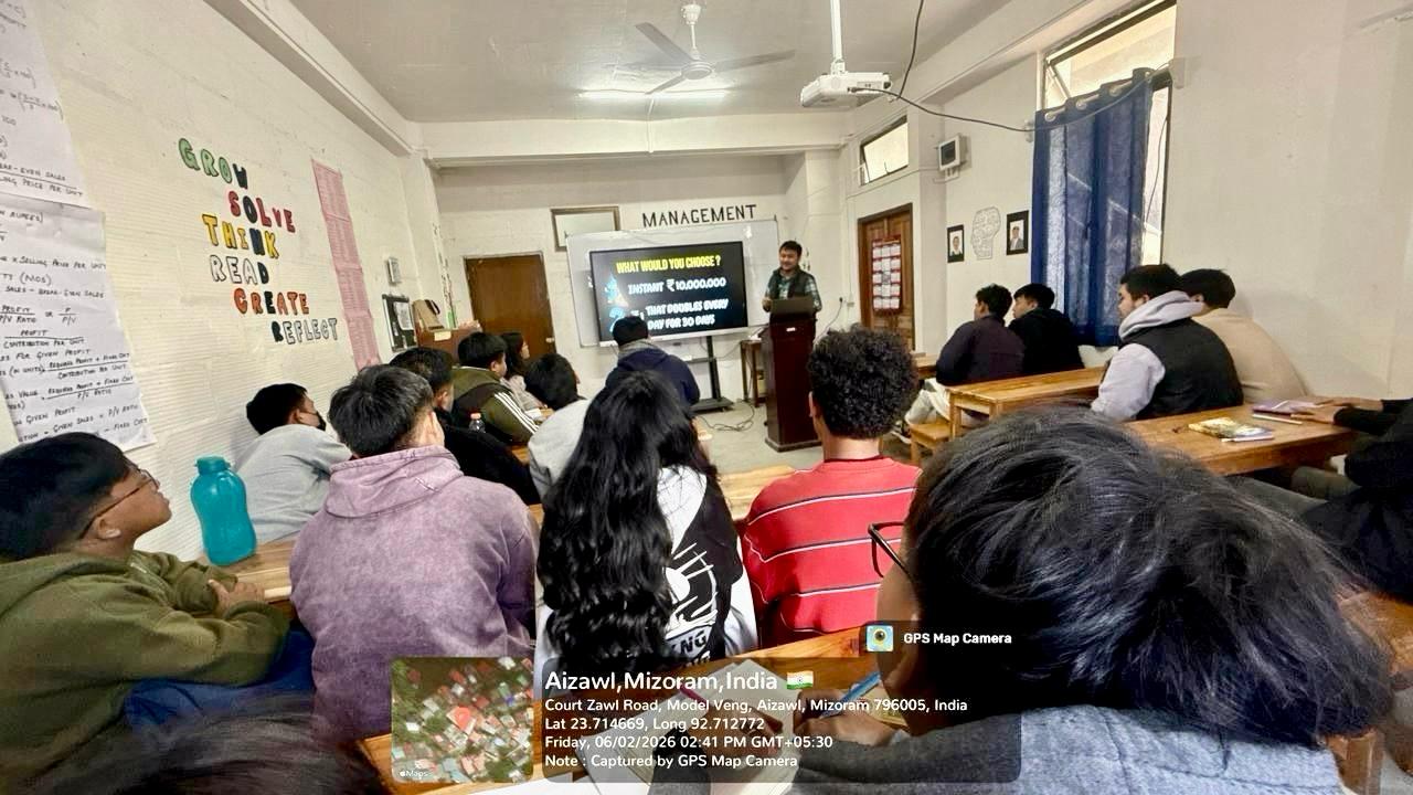 On 6th February, 2026, the Department of Management organized a Special Lecture on Financial Literacy, Career Guidance and Planning, delivered by Mr. Jeremia Remruatpuia, Co-Founder and Chief Marketing Officer (CMO) of Peipung Edutech.