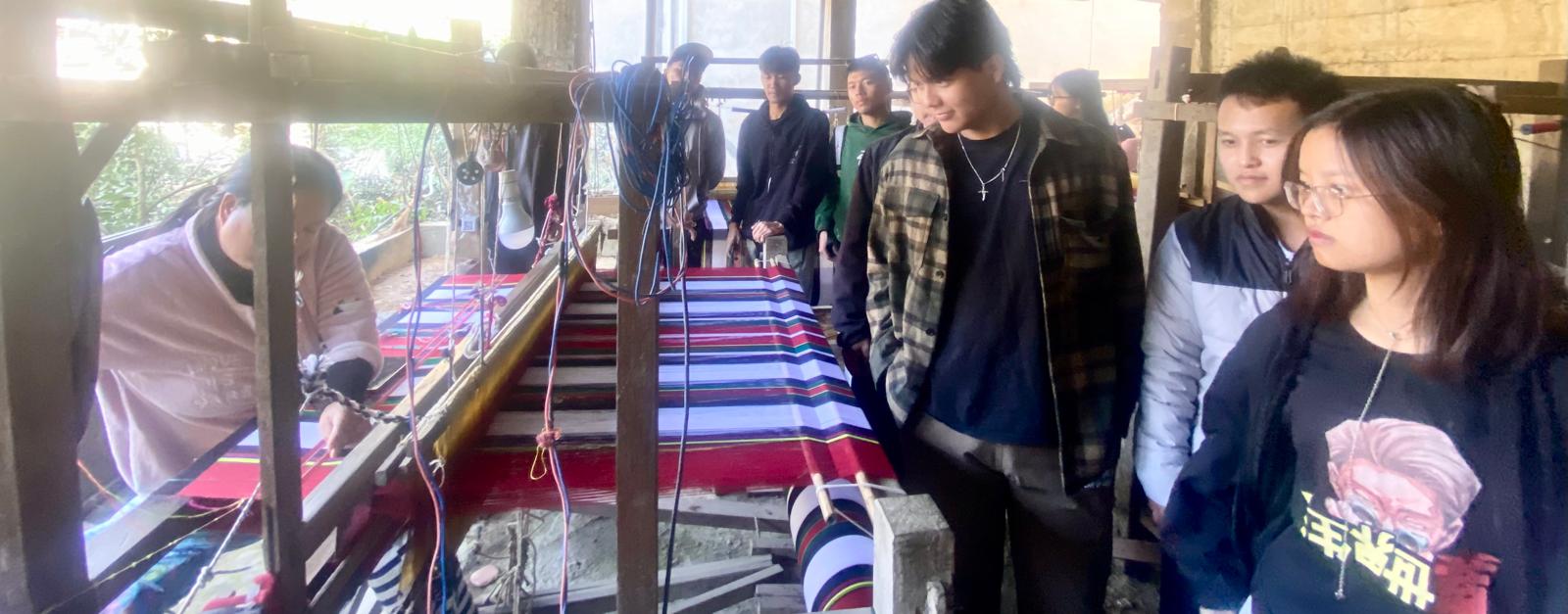 The primary objectives of the trip were threefold. Firstly, as Thenzawl is widely recognised for its well-established handloom industry, the visit aimed to enable students to gain firsthand insight into the traditional handloom practices of the region. Through observation and interaction with artisans at the training centre of MV Handloom, the students were able to better understand the techniques, craftsmanship, and cultural significance associated with the production of Mizo puan.