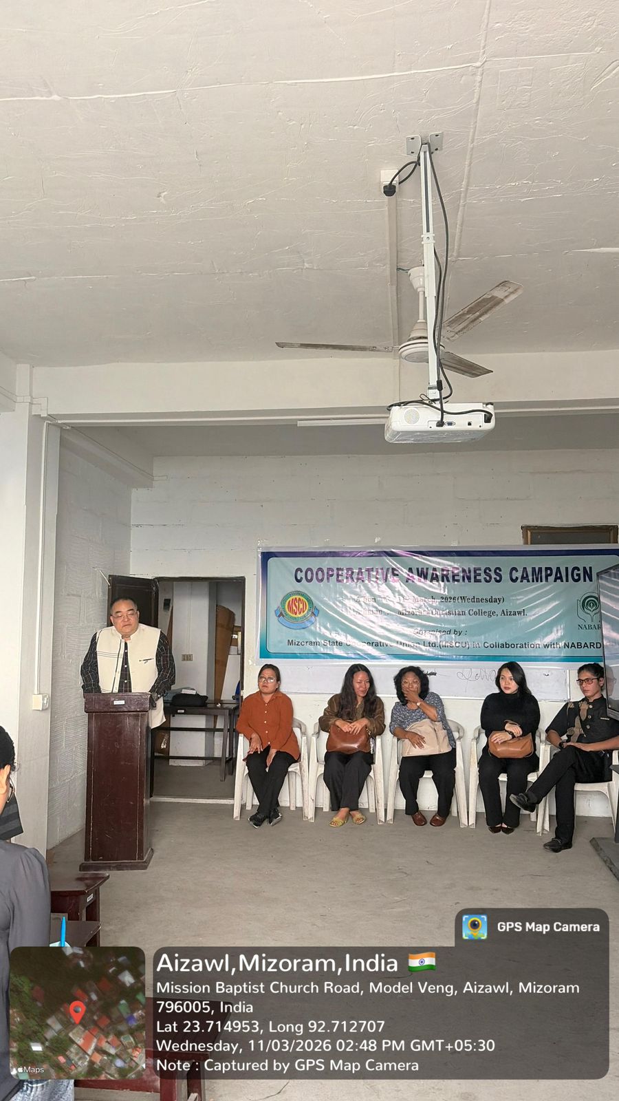 11.03.2026: A Cooperative Awareness Campaign was organized by the Mizoram State Cooperative Union under the Office of the Registrar of Cooperative Societies, Mizoram in collaboration with the Department of Commerce, Mizoram Christian College. The programme aimed to create awareness among students about the role and importance of cooperative societies.