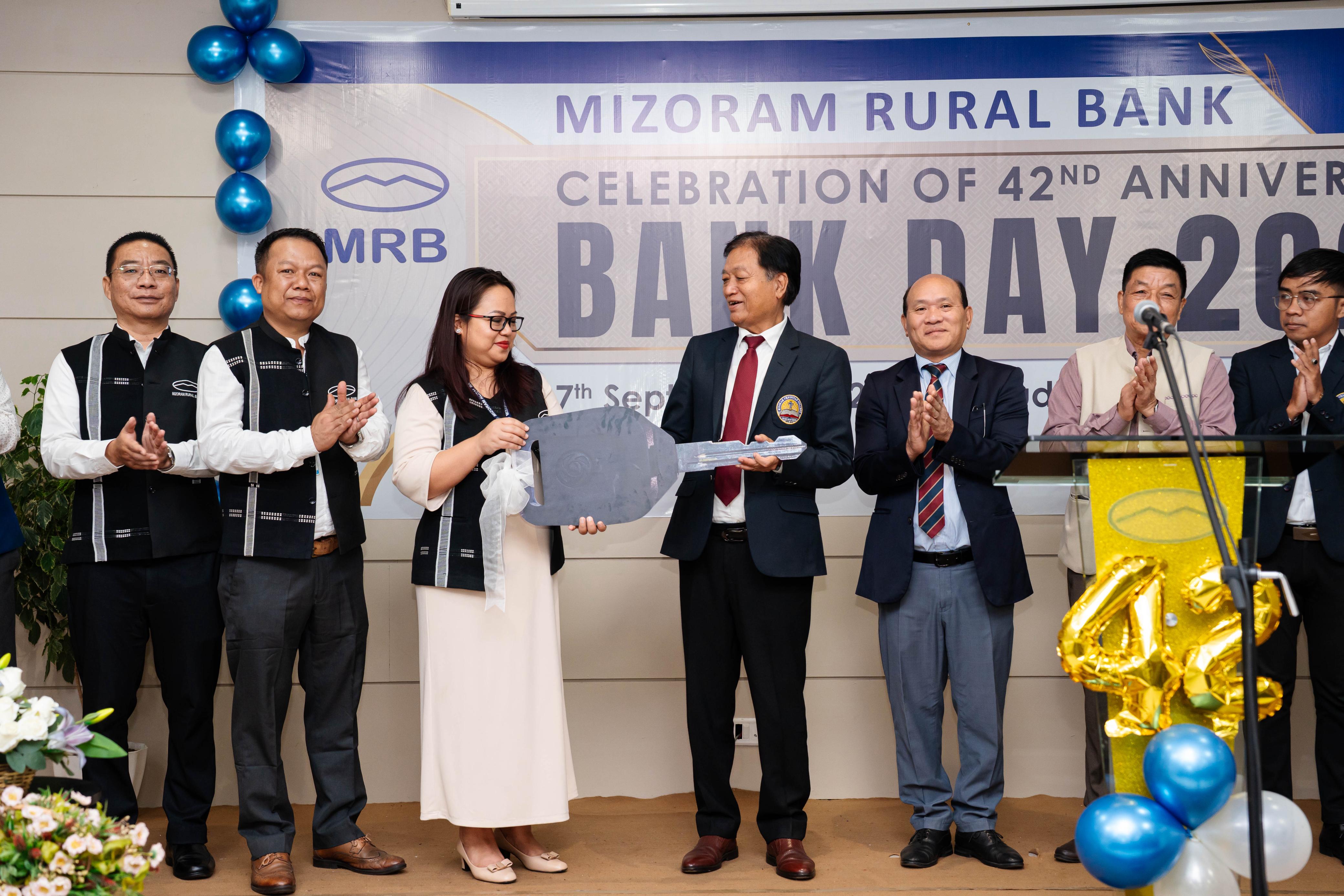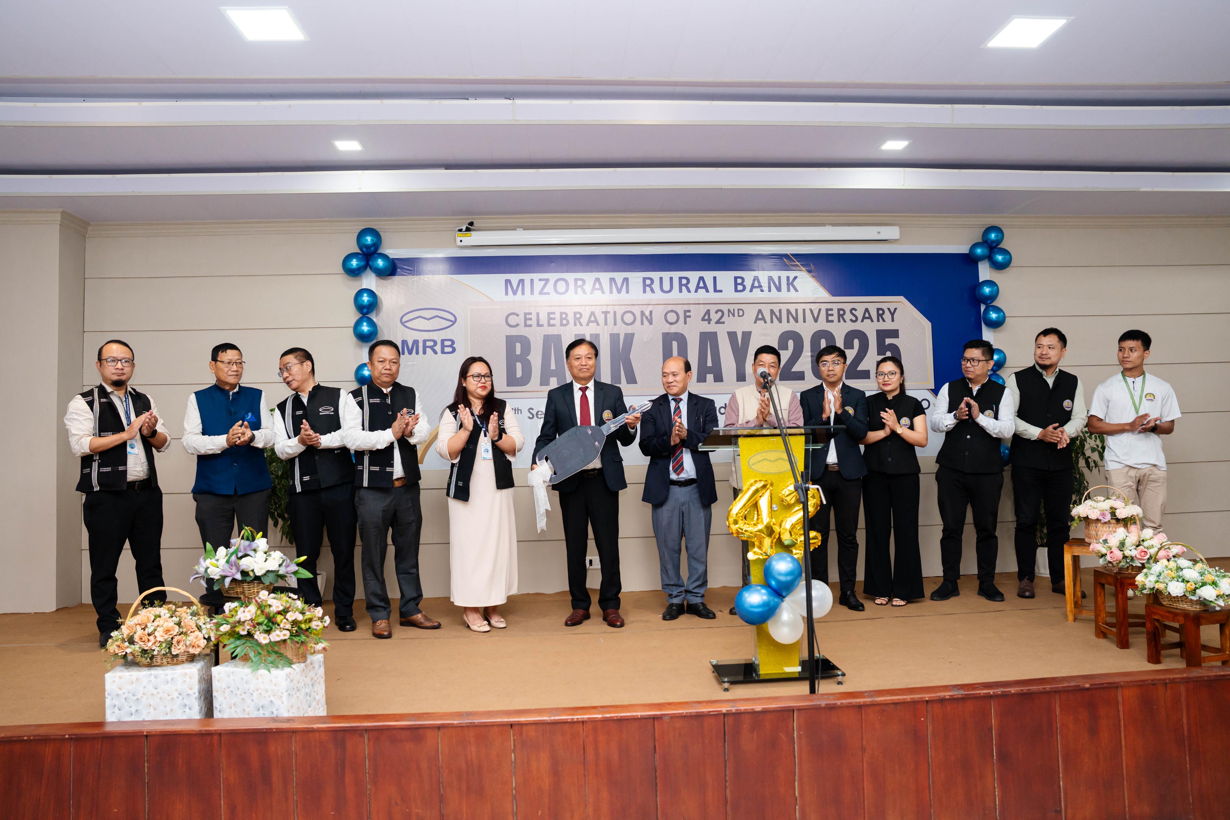 Mizoram Rural Bank (MRB) marked its 42nd founding anniversary on September 27, 2025, with a special ceremony at its Head Office Auditorium. As part of its Corporate Social Responsibility (CSR) initiative, MRB donated a college bus to Mizoram Christian College. The event began with a prayer led by Rev Dr. Rosiamliana Tochhawng, followed by an address from MRB Chairman, Mrs. Sheryl L Vanchhawng. The ceremony included a cake-cutting event and the formal handing over of the bus keys to Dr. Tawnenga, Principal of Mizoram Christian College. Faculty and student representatives from MCC attended the event in expression of gratitude to the bank.